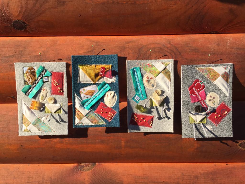 Zum Abschluss bestücken wir jede für jede einen Teil einer „Abschlusskarte“- diesmal landeten sogar Gummibärchen drauf- und ich gebe denen zu Hause immer noch das letzte Finish mit Rand und Jahreszahl. Das macht unheimlich viel Spaß, so nach unseren anstrengenden 1/8 Inches noch mal so wild drauflos zu nähen.