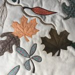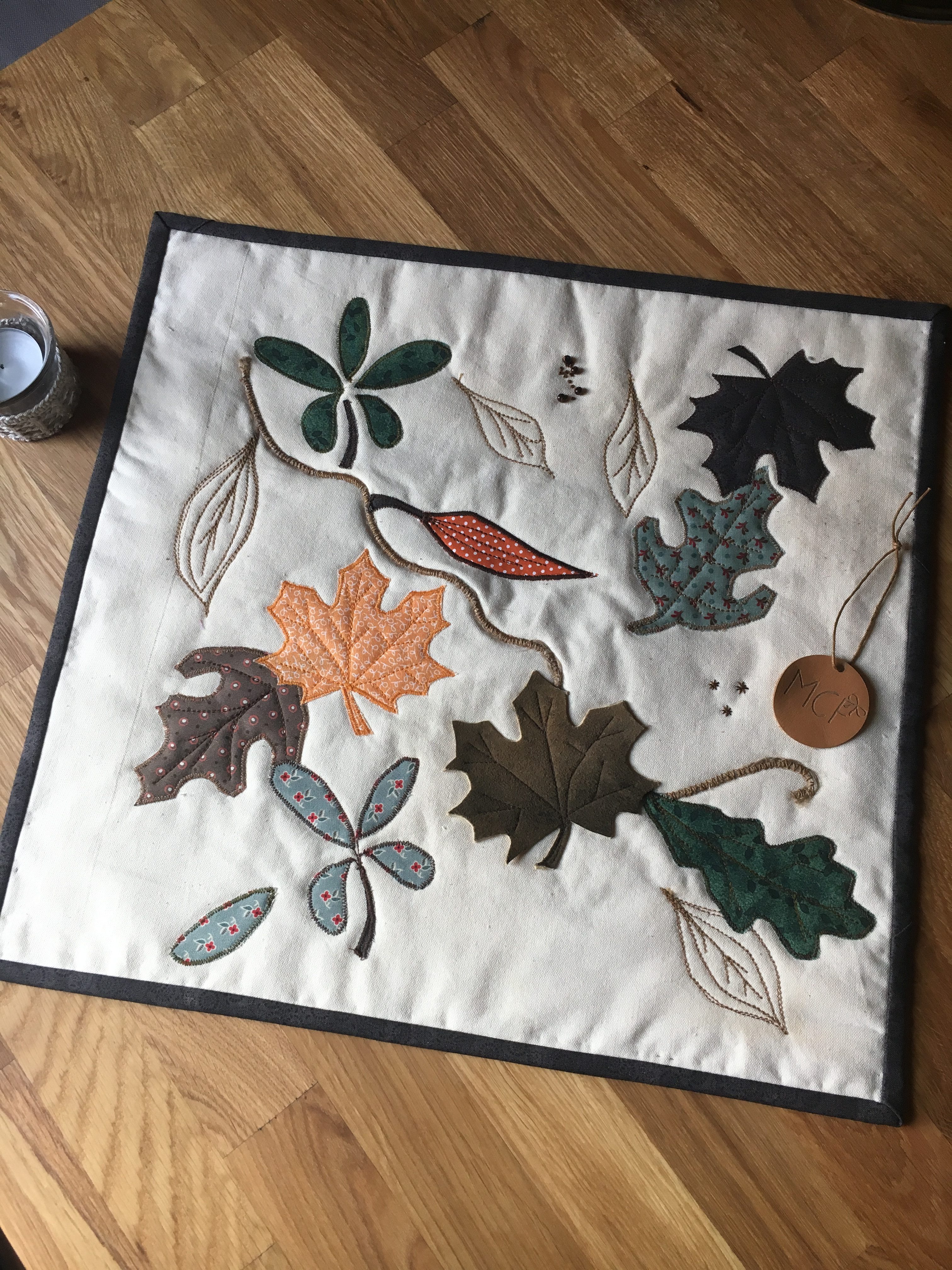 Eigentlich war dieser kleine Quilt nur ein Probeläppchen für meinen letzten Herbstkurs. Aber ich mag das Hirschlederblatt sehr und zeig Euch noch mal, was man mit Leder und vielen Resten anstellen kann!