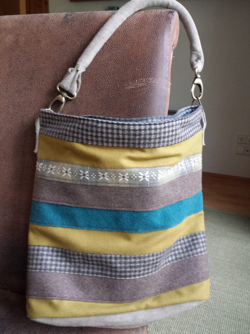Hier ein paar Ausschnitte meiner Anfertigung der Tasche „Chobe“ von Elle Puls. Wirklich prima nachzuarbeiten, nur der Taschenhenkel überzeugt mich noch nicht 100%ig.Vielleicht weil ich echtes Wildleder genommen hab und das sehr weich ist. Sieht aber trotzdem toll aus!