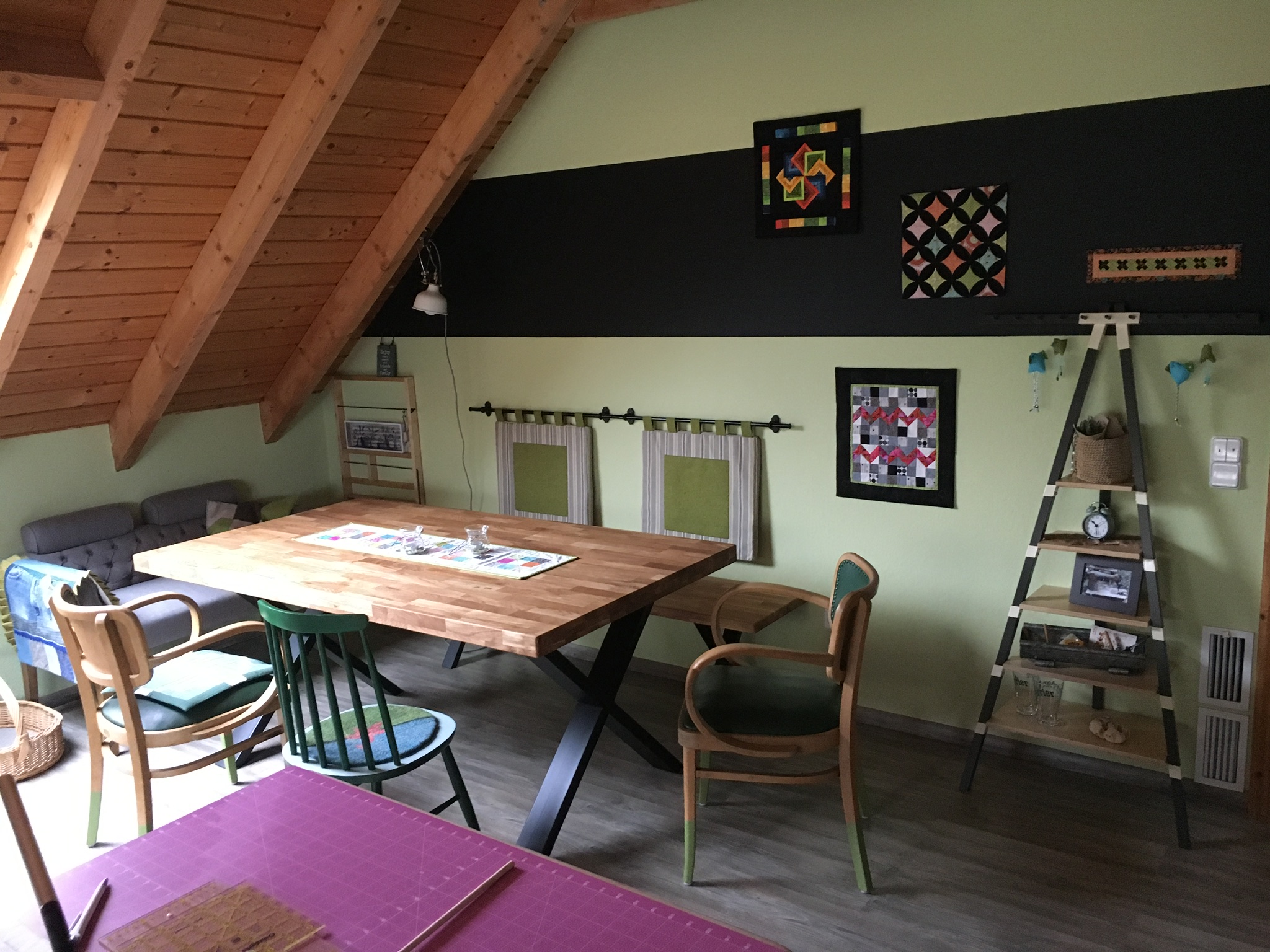 Ja, wie die Zeit rast ist schon unglaublich! Nach einer schönen Zeit in Östrreich wurde es bei mir wieder arbeitsreich: mein neues Arbeitszimmer sollte doch endlich fertigwerden. Da ich beim Aussuchen meiner Accessoires immer echt lange brauche, bis ich das Richtige gefunden habe. Das Ergebnis seht ihr hier💃🏻. Meine Lieblinge sind der Schneidetisch, den mir Tatjana, sie ist das „Kellerkind“ aus Monheim, angemalt hat. Von ihr sind auch meine Stühle. Schaut mal auf Ihre Webside, lohnt sich.