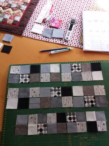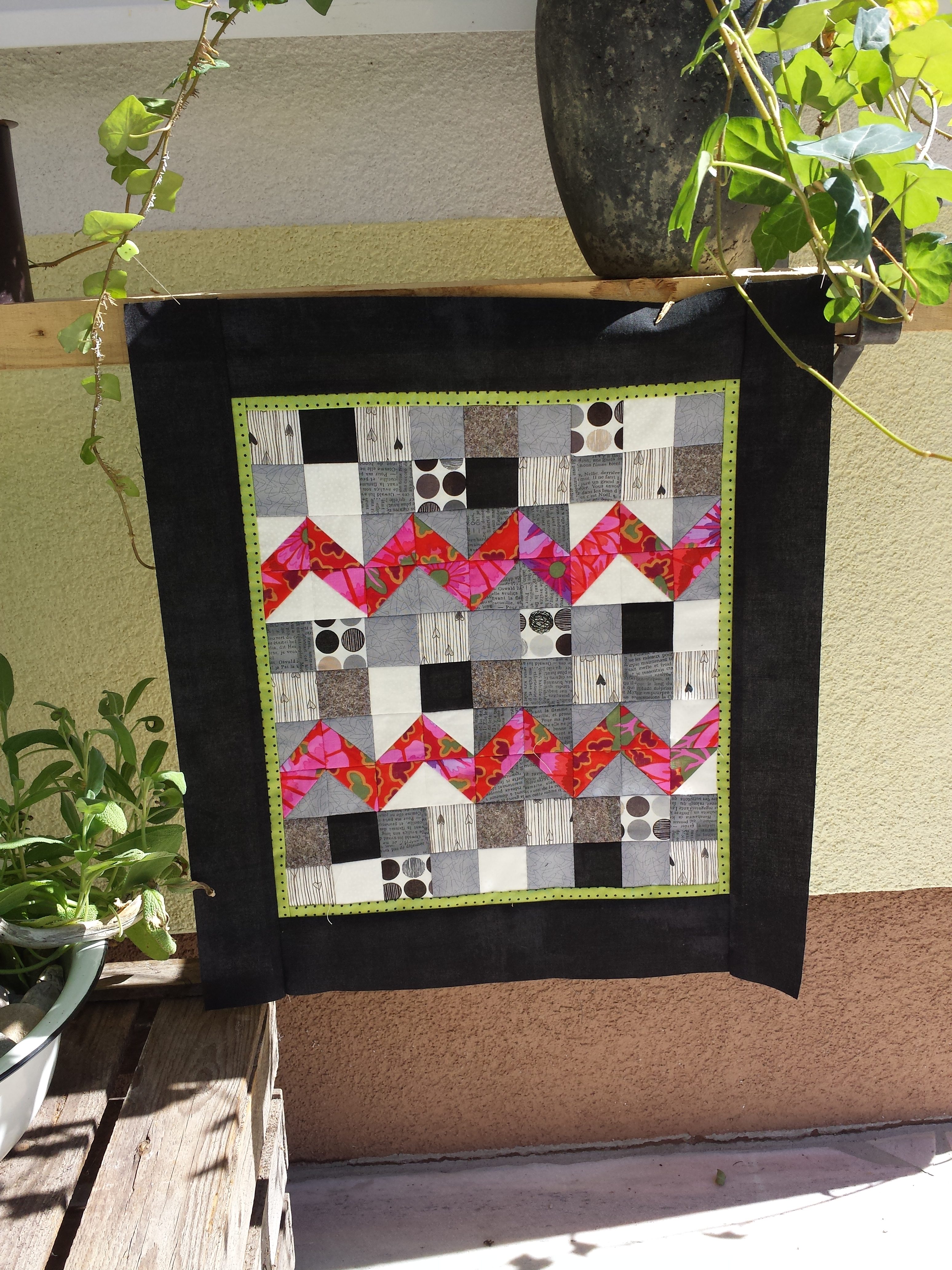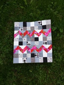 Mein erster Beitrag aus Österreich: ein kleiner moderner Quilt, der mir schon jetzt Freude macht. Ich hab euch mal die einzelnen Schritte fotografiert, damit ihr seht, dass er schnell gemacht ist.