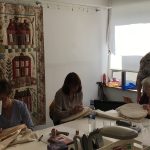 Ab und zu muss man ja auch mal wieder was Neues lernen/ausprobieren und verfeinern. Wir haben haben einen Handquiltkurs im Kaleidoskop Werne besucht, den Frau Heinemann für uns gegeben hat. Da wir das Quilten zwar praktizieren, leider aber immer nur „rauf und runter“, wollten wir mal die Technik mit mehren Stichen auf der Nadel ausprobieren. Fest steht jedenfalls, dass das Equipment eine ausschlaggebende Rolle spielt. Die Nadelgleiter und Silberfingerhüte von Esther Miller sind schon eine feine Sache. Ob auch ein Nadelzieher nötig ist, weiß ich noch nicht wirklich. Ich werde weiter berichten. Spaß haben wir jedenfalls viel gehabt und die älteste Dame war sogar fitte 90. Ist ja auch eine sehr alte Tradition, das Quilten.