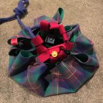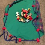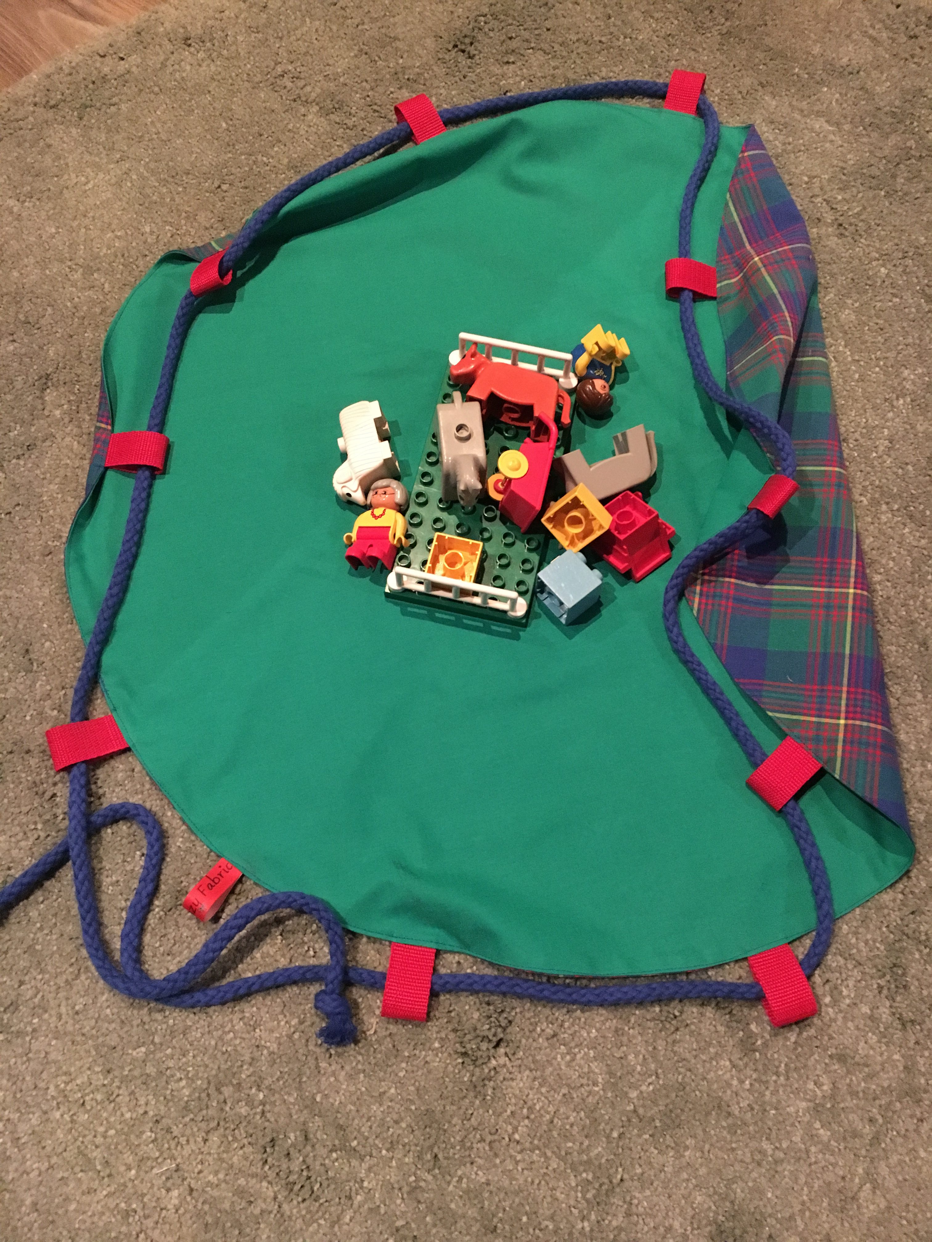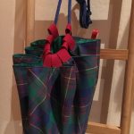 Eine große runde Sache für Eltern , die abends mal schnell alles in „trockenen Tüchern“ haben möchten: auch aus alten Westfalenstoffen und Gurtresten genähter Beutel, der eigentlich nur aus 2 großen runden Kreisen besteht. Die werden rechts auf rechts aufeinander gelegt, mit Gurtband bestückt und mit einer Wendeöffnung zusammengesteppt. Geht ziemlich schnell und wenn man mehrere macht, einen Besenstiel horizontal an die Decke hängt oder im Baumarkt eine Hakenleiste kauft, kann man schon einige dran hängen.