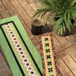 Vor Kurzem fielen mir meine kleinen Seminole – Versuche in die Hand und ich fertigte kleine Tischläufer/tablerunner für den Sommertisch an. Die sehen mit ein paar orangenen Ranunkeln oder Tulpen wirklich toll aus auf dem Tisch.
