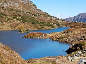 Gestern waren wir dann noch auf dem Höchstein (2543mtr) und wollten durch die Filzscharte in Richtung Hans-Wödl-Hütte, wo wir am Bodensee mein Auto platziert hatten. Ein großes Schneefeld und gefühlte „Aiger Nordwand-Verhältnisse“ machten diesem Vorhaben ein Ende und wir mußten zurück. Ja, trittsicher bin ich ja, aber leider nicht schwindelfrei. Nach gefühlten 20 Stunden waren wir zurück am Kamin und nach ein bißchen Resteessen um halb neun im Bett. Auf meinen Oberschenkeln kann man heute Nüsse knacken😂.