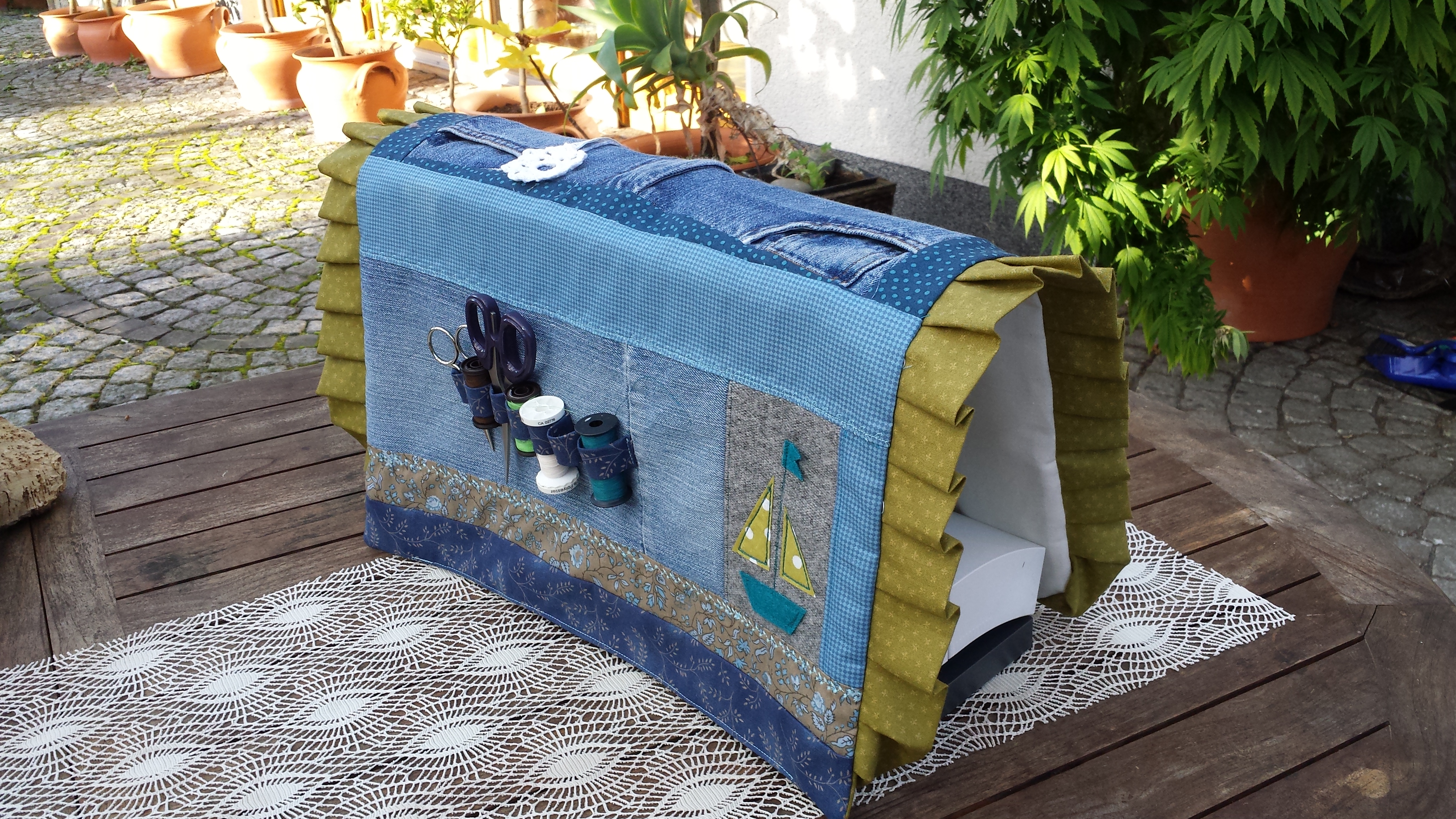Hallo,meine Lieben! Ich bin zurück aus den Bergen und fange nun an, euch erst mal meine liebste Beschäftigung und meine Lieblingsstücke vorzustellen. Mein wichtigstes Utensil ist natürlich meine Nähmaschine, eine Pfaff 2030, ein unverwüstliches Teil. Für die hab ich eine Abdeckung für Zuhause genäht. Ist auch gleichzeitig ein recyceltes Teil, weil ich gern alte Jeans vernähe. Gern geb ich eine Anleitung weiter. Bis bald, es kommt jetzt ständig Neues! Und schönes Wochenende🙋🏻